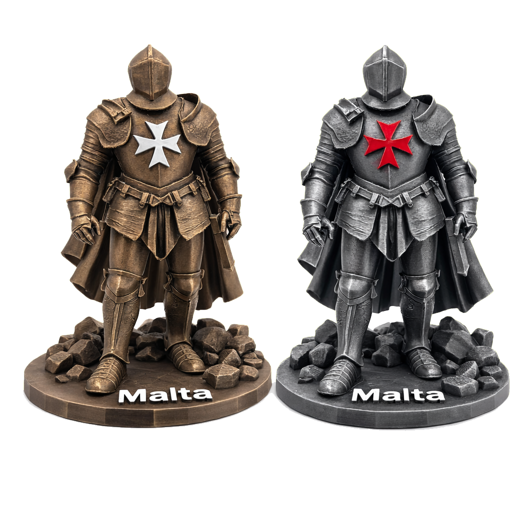 Each piece is carefully 3D printed, ensuring sharp details, strong structure, and a high-quality finish — ideal for display at home, in an office, or as a distinctive Maltese gift.