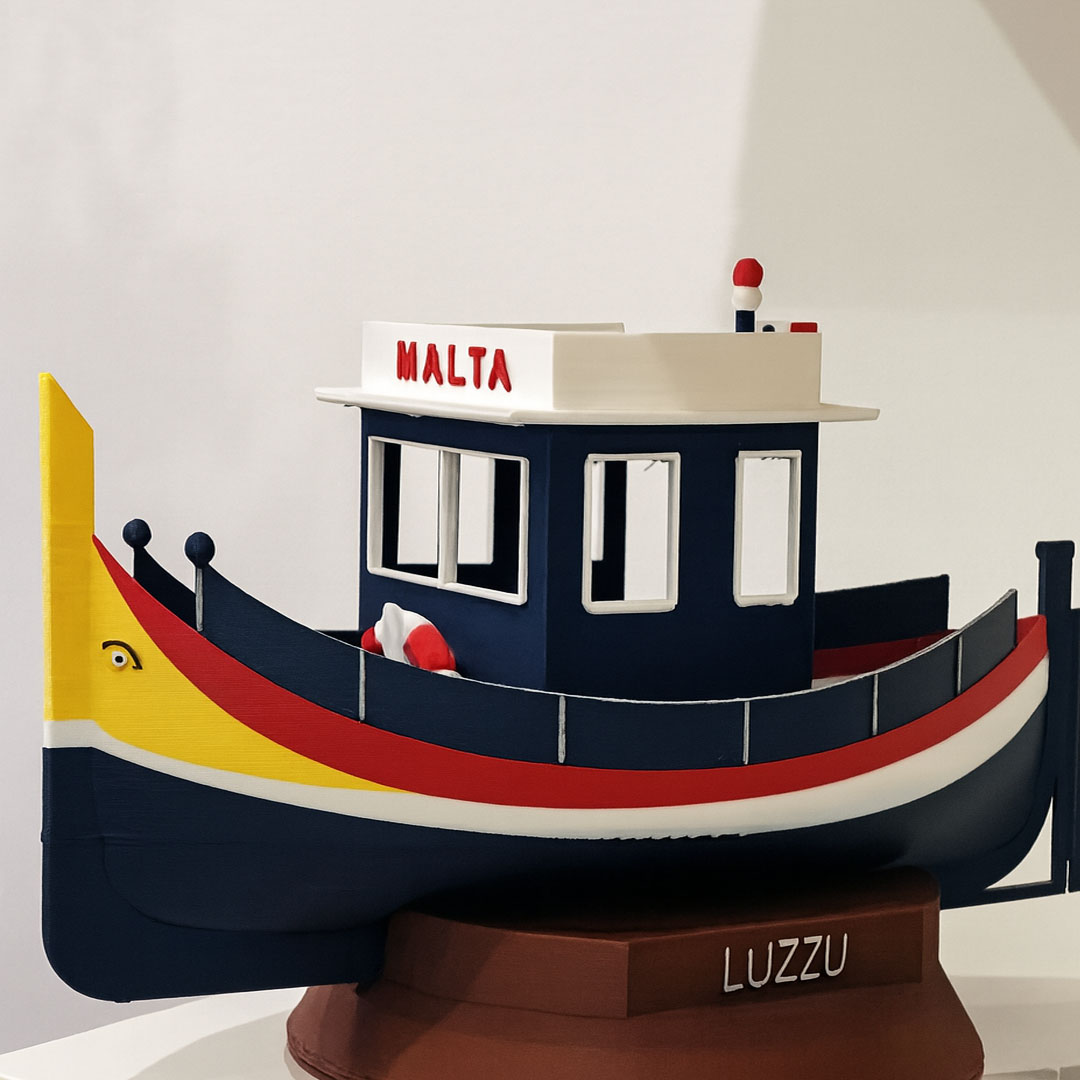 Bring a touch of Maltese heritage into your home with this beautifully crafted 3D-printed Luzzu model. Designed with remarkable attention to detail, it captures the iconic front view of Malta’s traditional fishing boat — featuring the bright yellow prim, bold traditional colours, and the symbolic “Eyes of Osiris” believed to bring protection and good luck.
