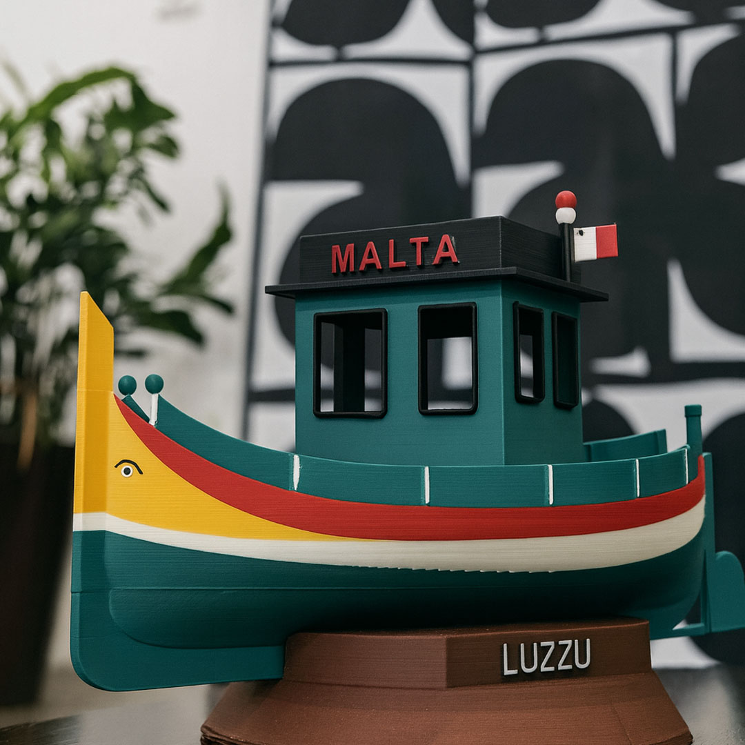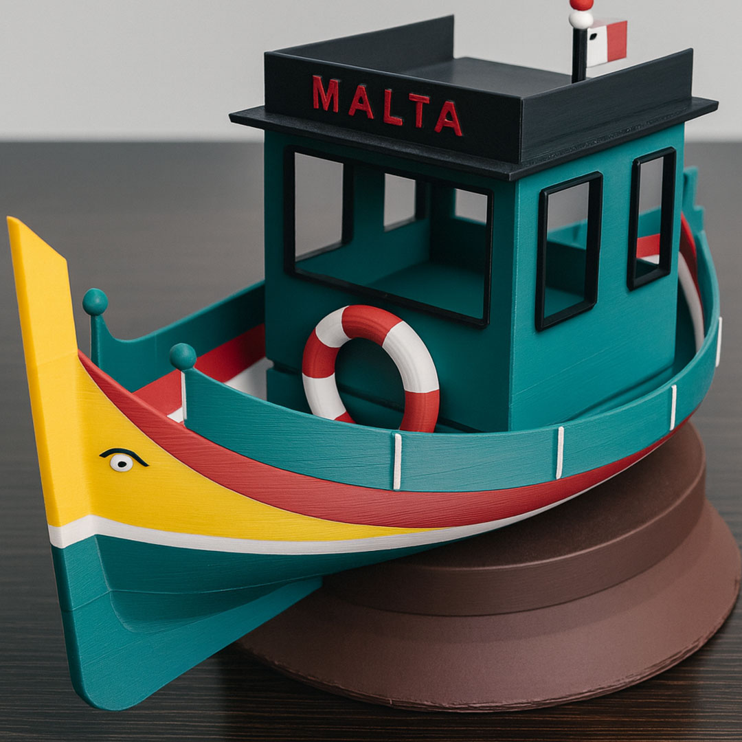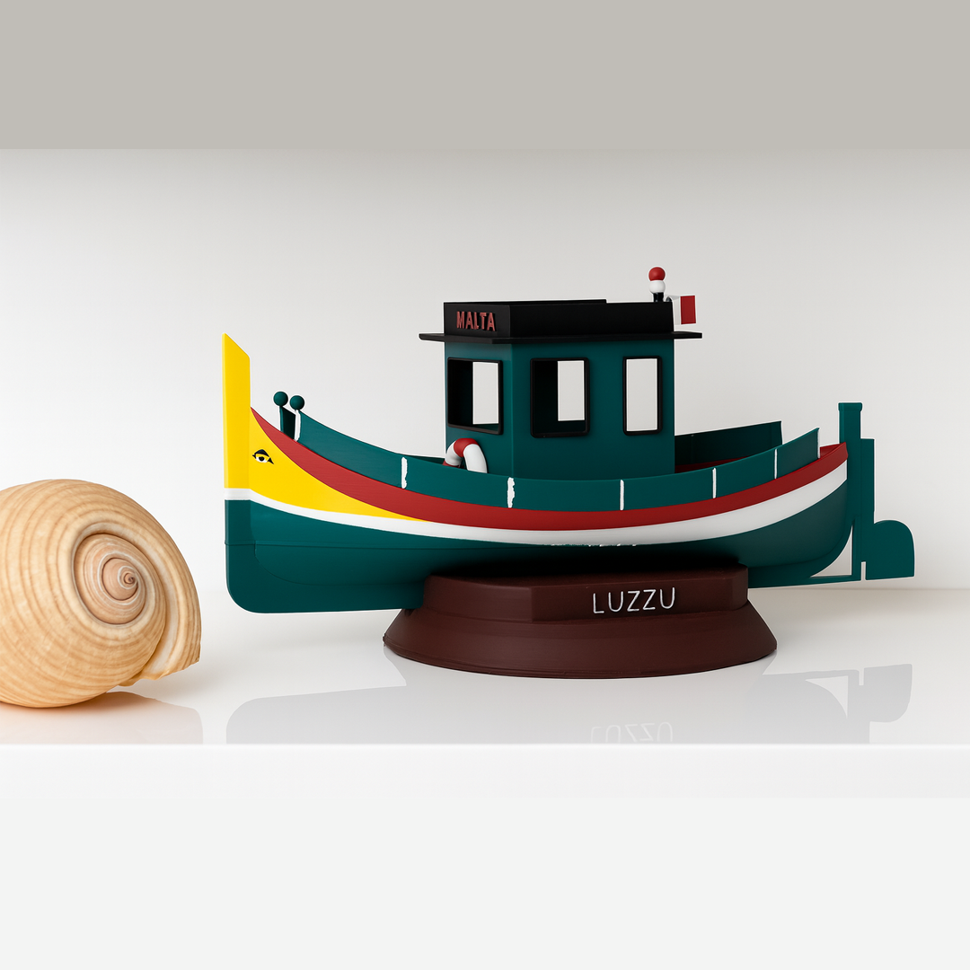 Bring a touch of Maltese heritage into your home with this beautifully crafted 3D-printed Luzzu model. Designed with remarkable attention to detail, it captures the iconic front view of Malta’s traditional fishing boat — featuring the bright yellow prim, bold traditional colours, and the symbolic “Eyes of Osiris” believed to bring protection and good luck.